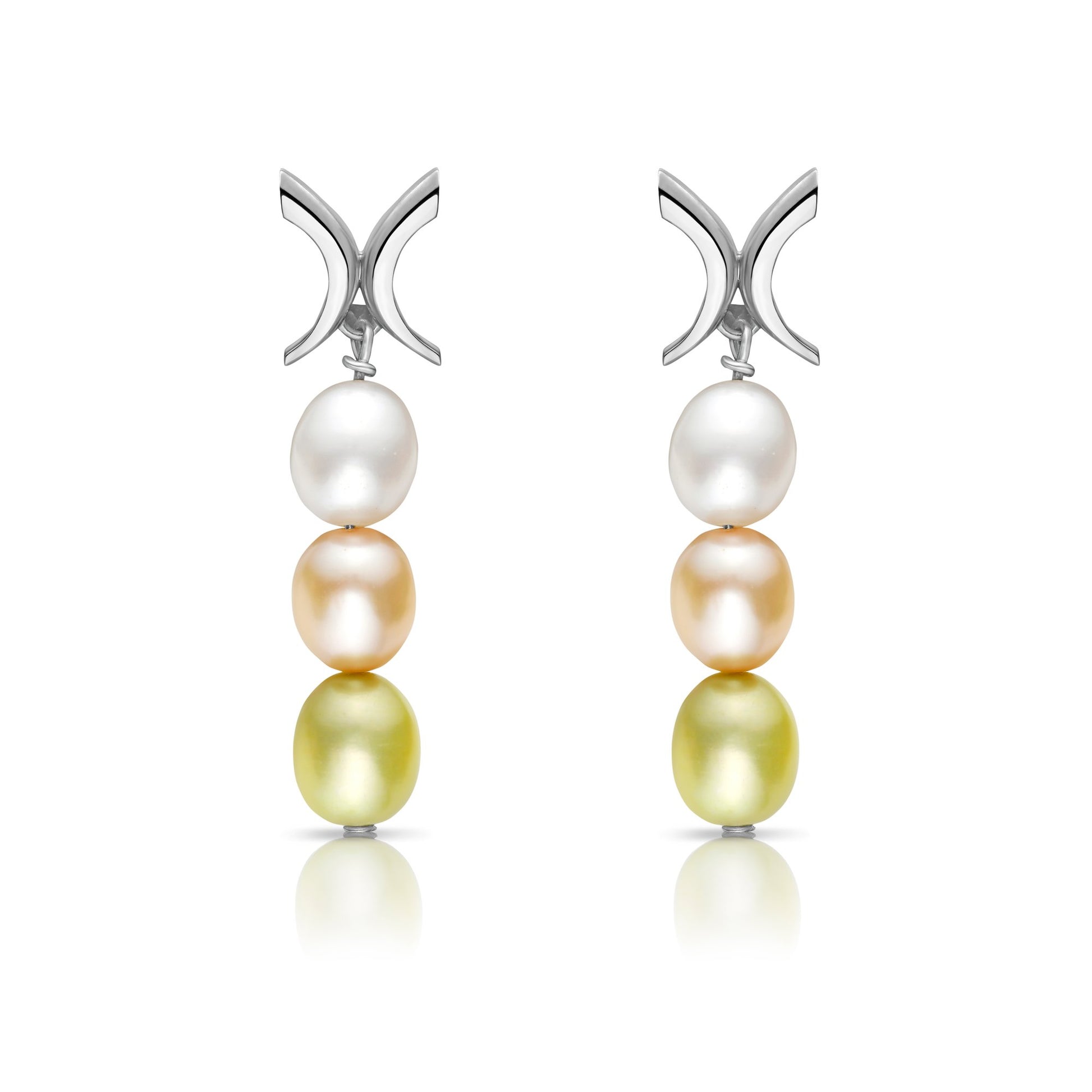 Beso Triple Pearl Drop Earrings in Sterling Silver