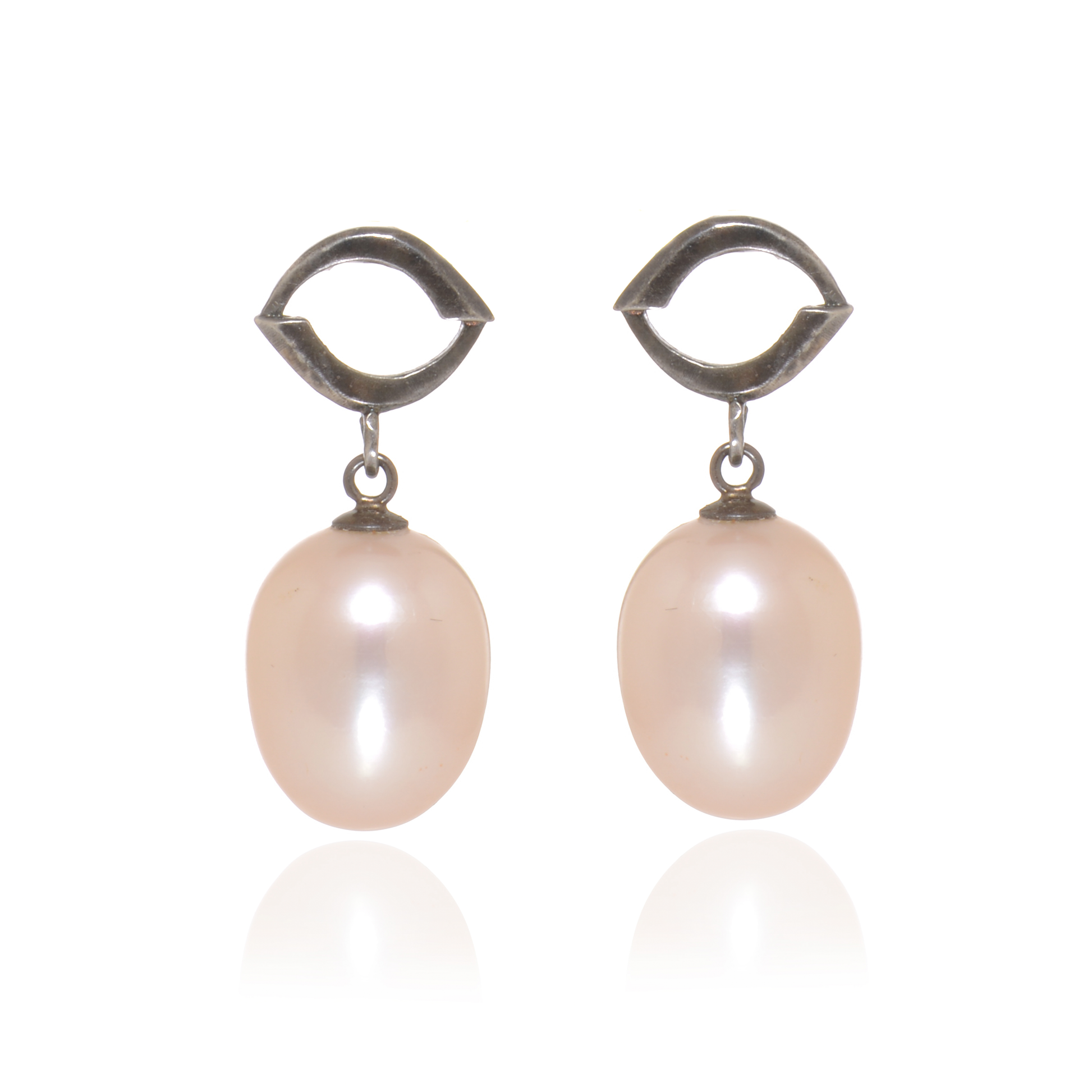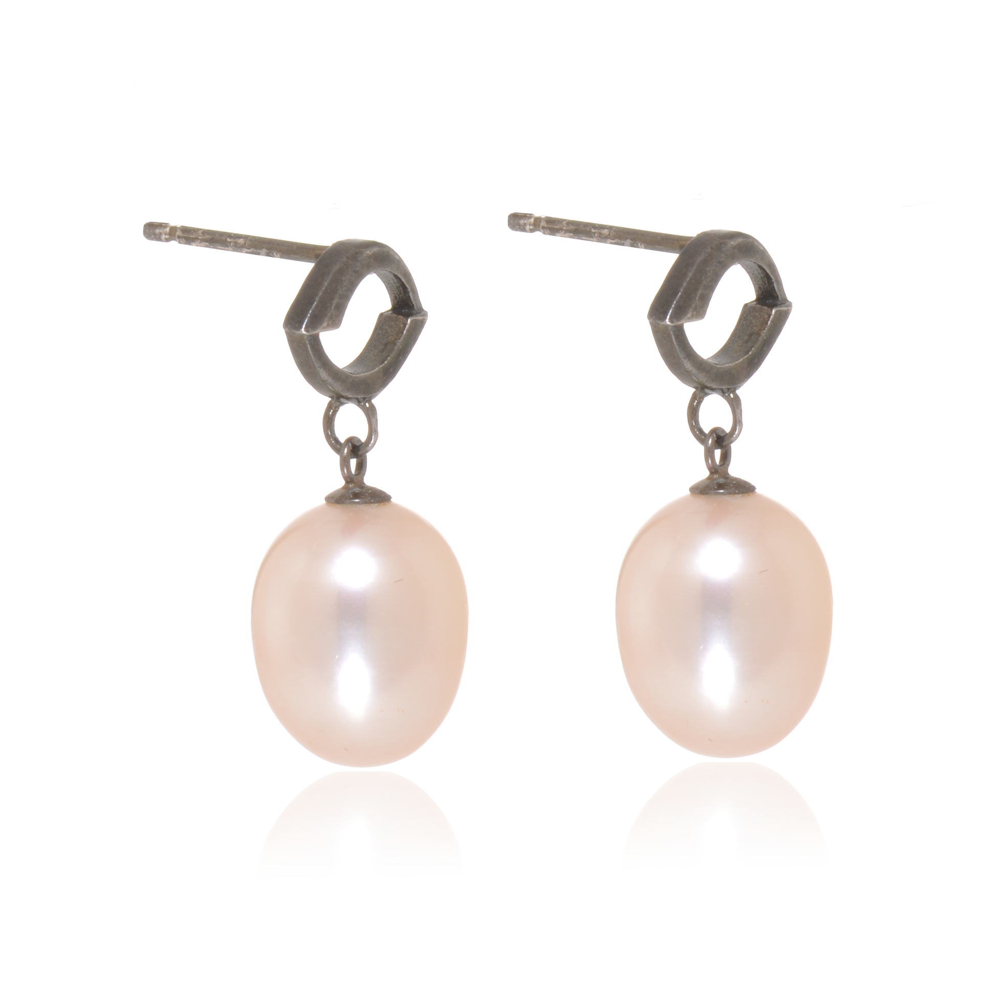 Black Axis Pearl Drop Earrings in Sterling Silver