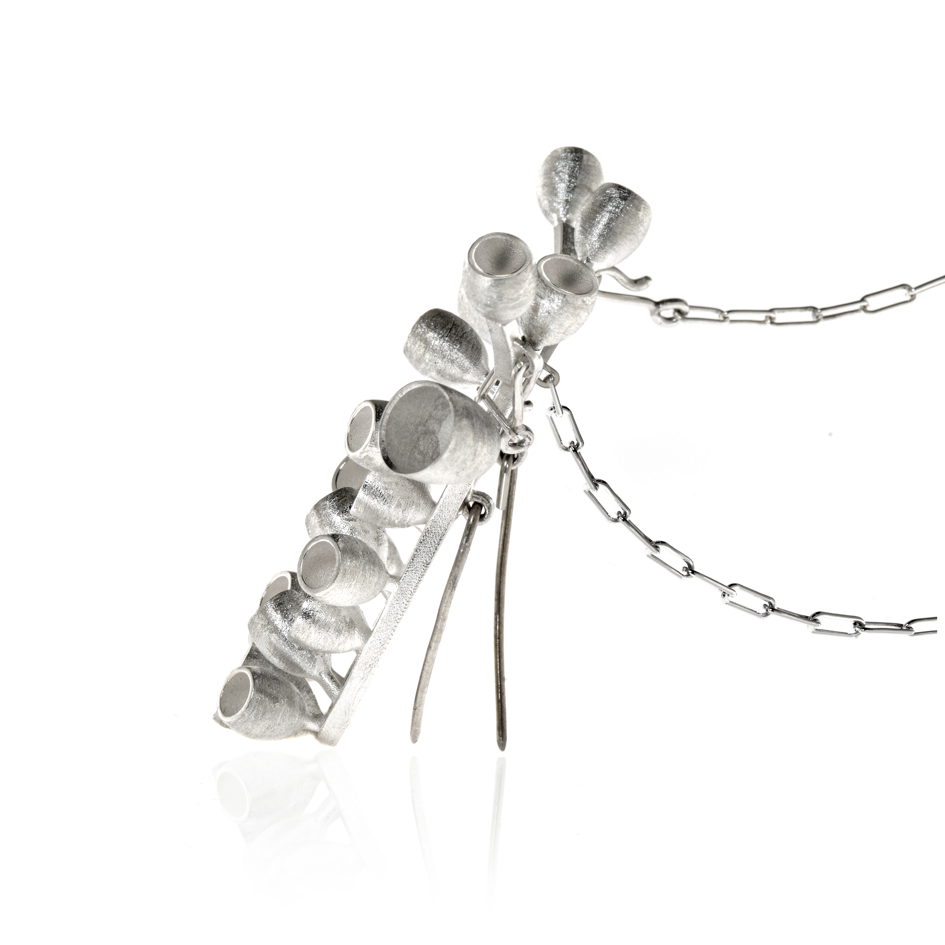 Experience the luxurious dual functionality of this exquisite necklace and brooch. Inspired by the natural beauty of seeded eucalyptus clusters, this magnificent piece is sure to make a statement and captivate those around you. This piece can be worn as a necklace or independently as a brooch.