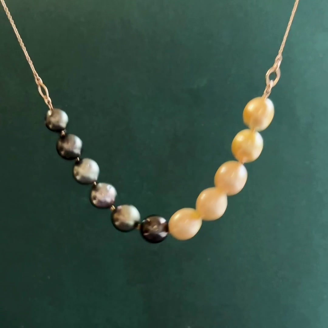 As a definitive selection within the Aksi collection, this piece introduces the Ova Anchors; small, hand-made 14k gold links that act as the connective tissue of the form. Much like the rhythmic cilia of a biological pathway, these anchors provide the structural strength necessary for a weighted gradient of Tahitian and Golden South Sea pearls to hang with fluid, effortless freedom.