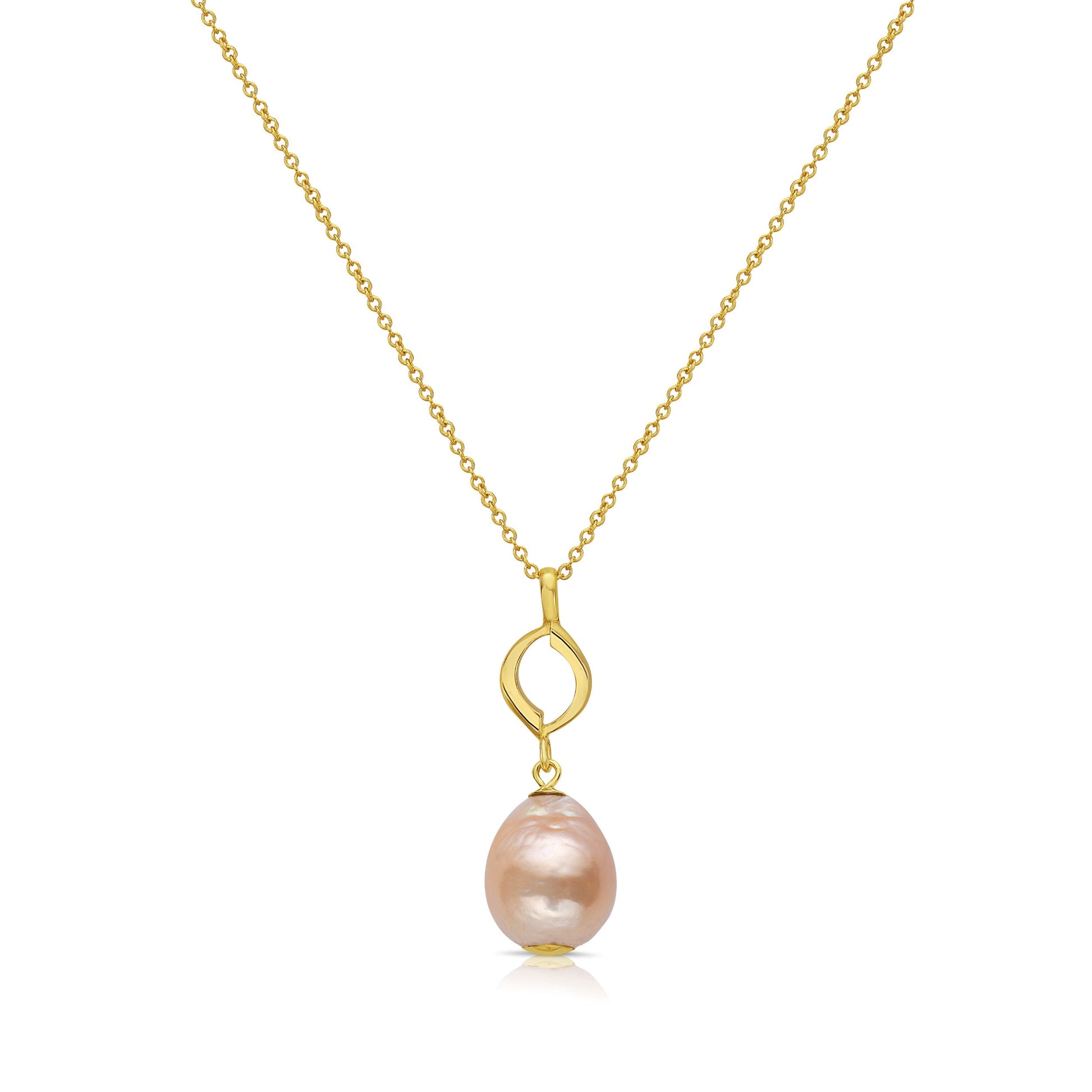 Lustrous yellow freshwater pearl hanging from an Akis link. Its substantial size is sure to illuminate your face and be ever reflecting the colors of your tops, making it a perfect match.