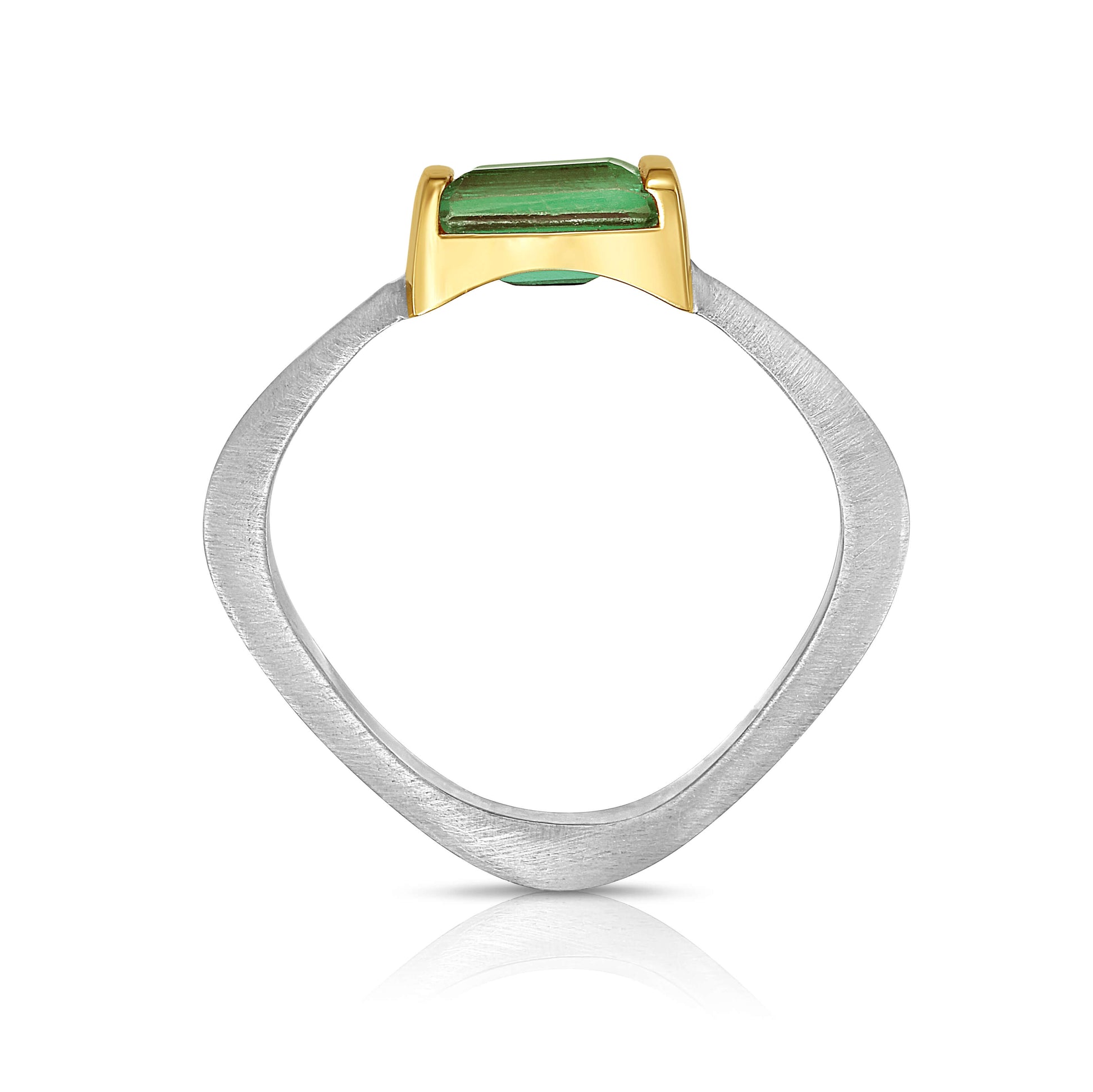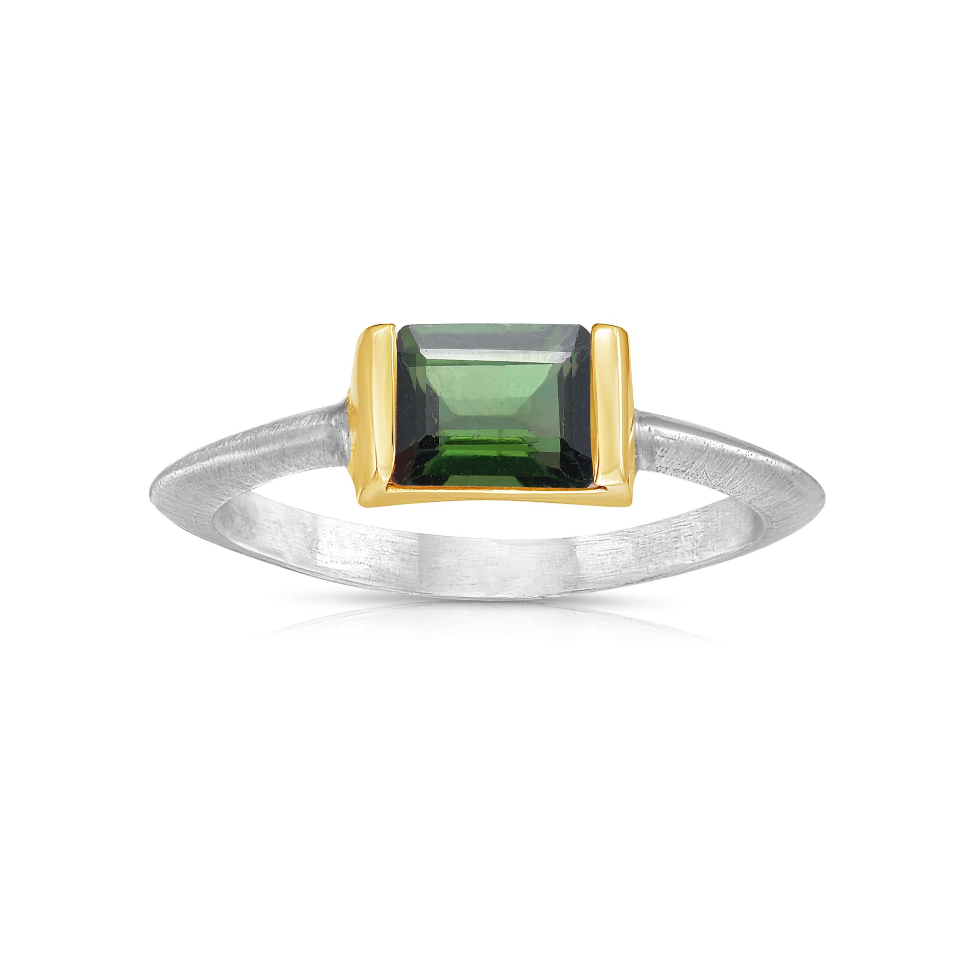Convexo Linear Green Tourmaline Ring in Gold and Silver