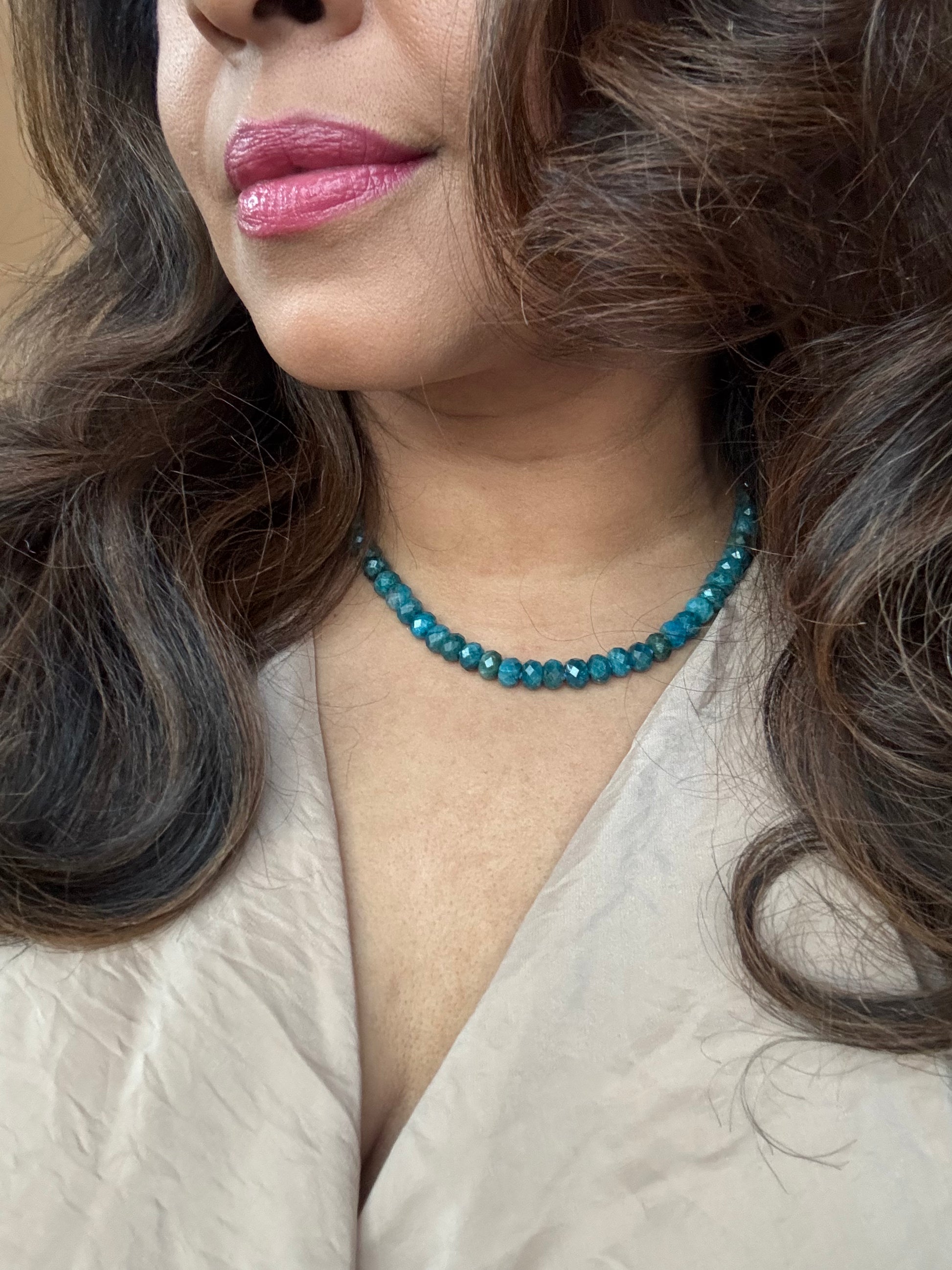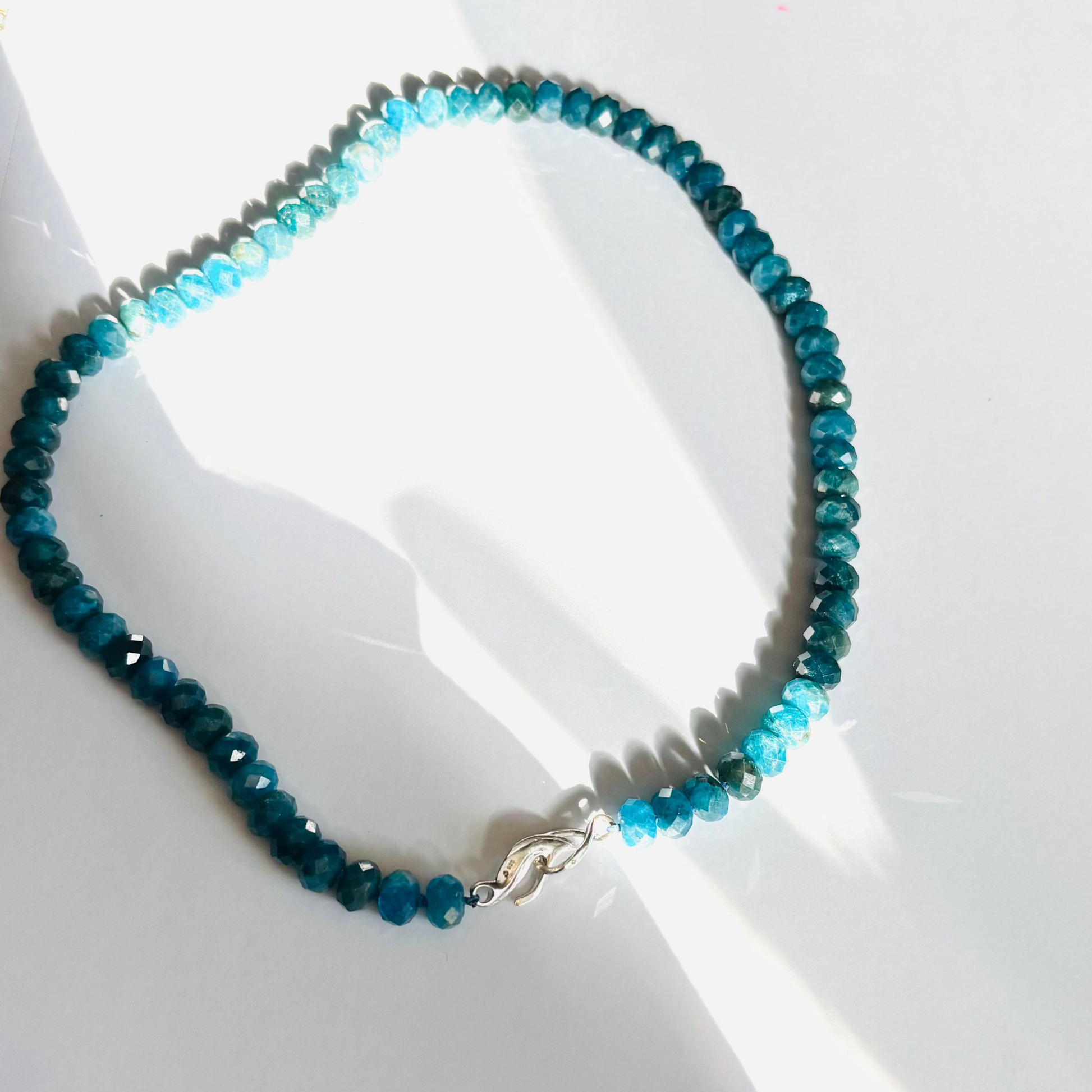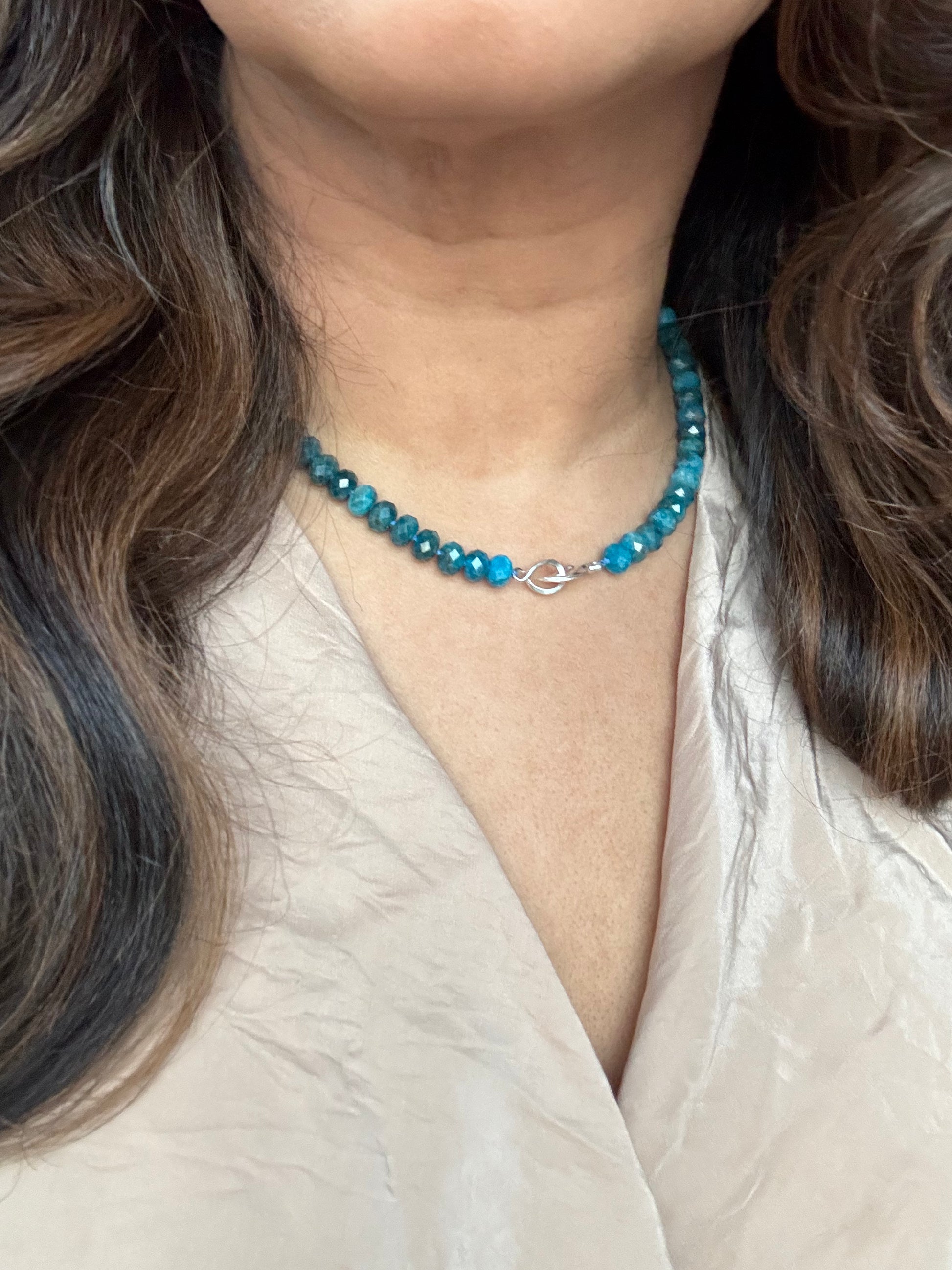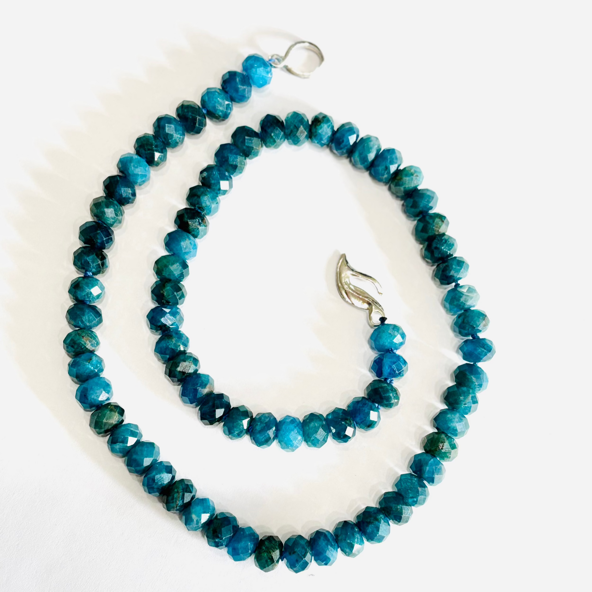 Apatite Faceted Rondelle Bead necklace with Flow clasp in Sterling Silver