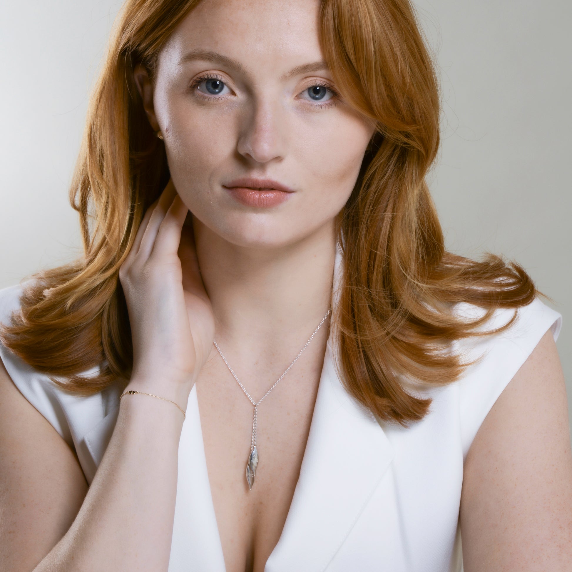 Elegantly designed, this statement necklace features two high-shine pods dangling from a vine, delightfully complemented with satin-finish detailing. An effortless way to imbue a look with chic elegance.