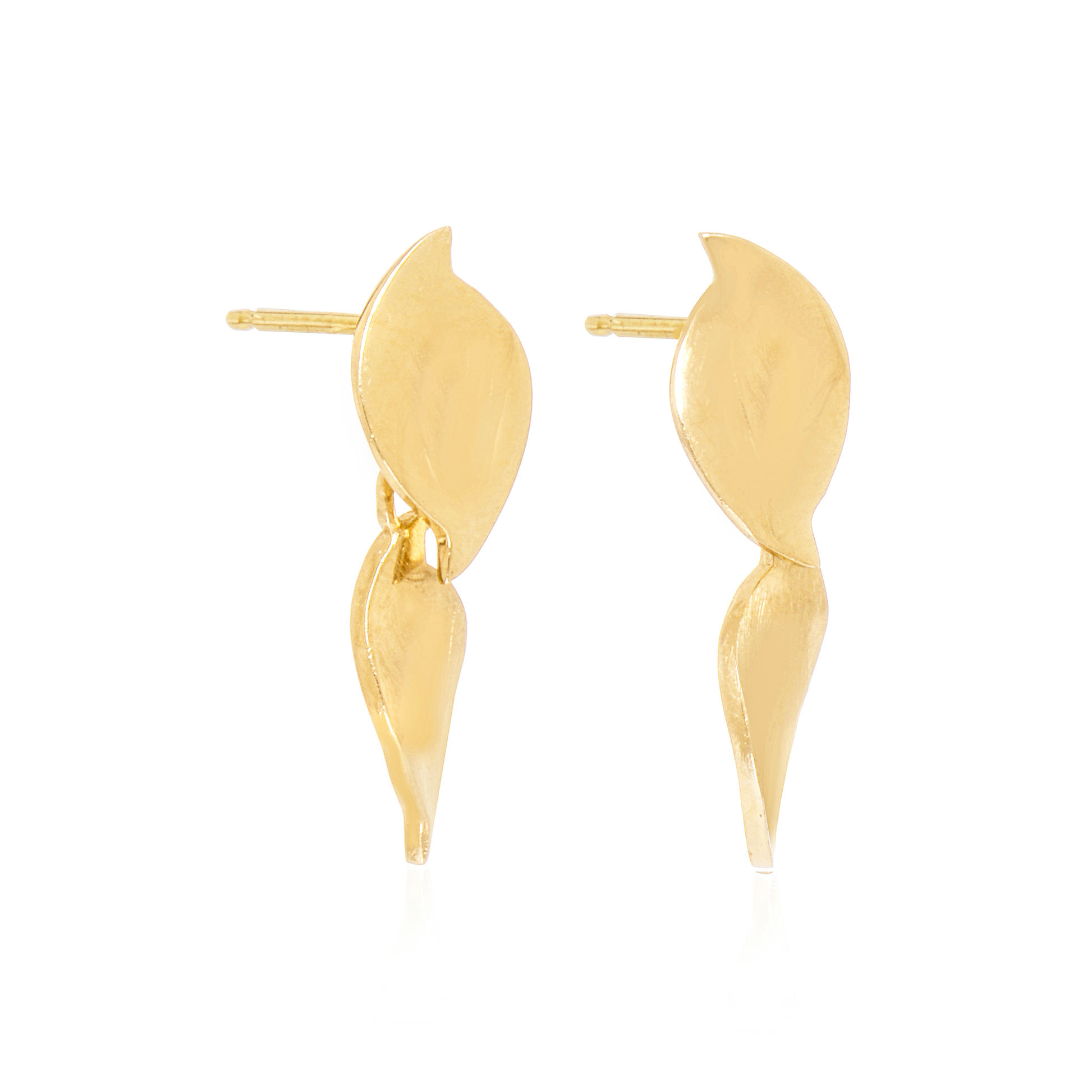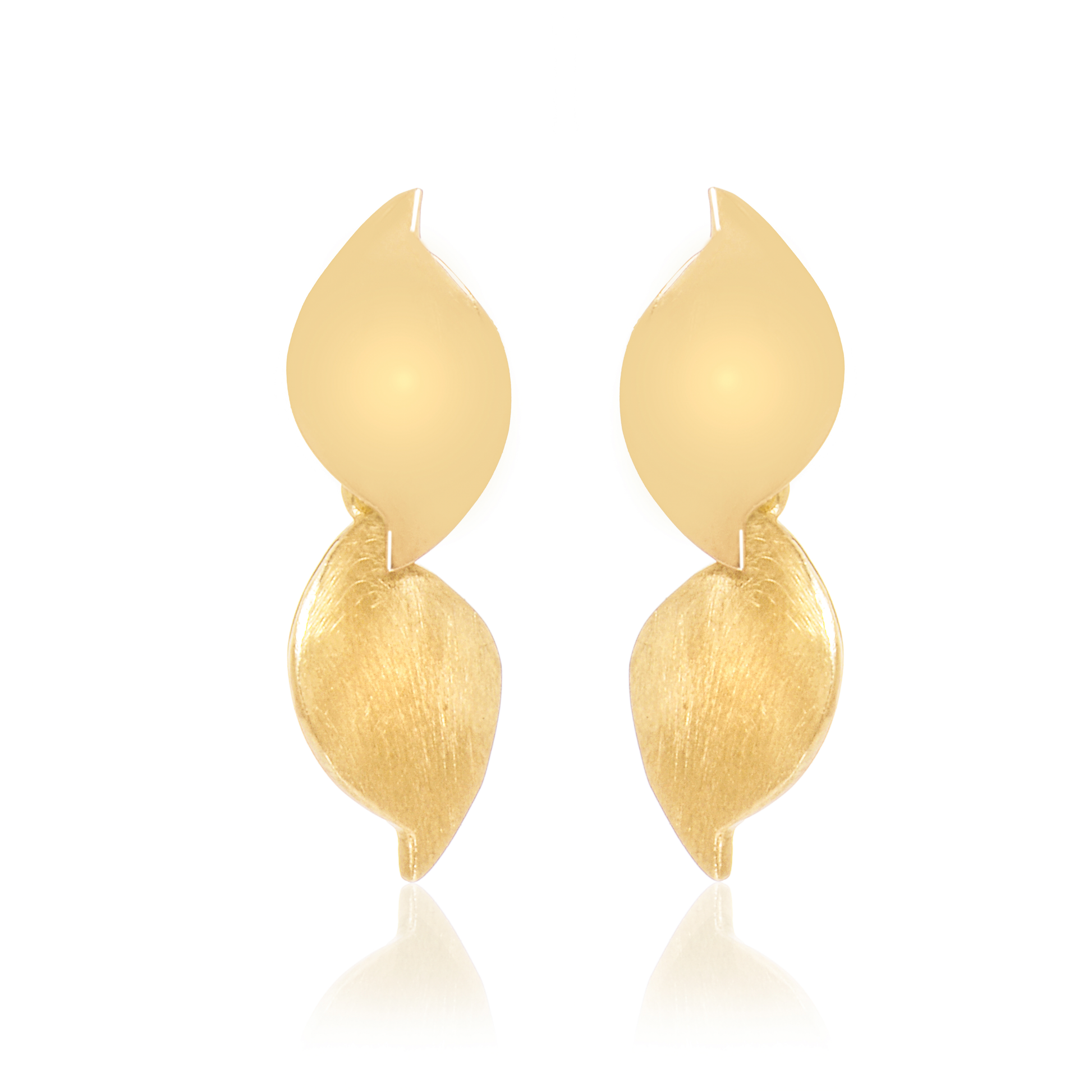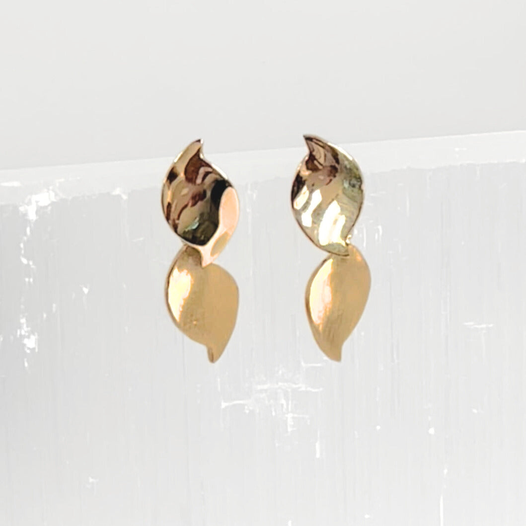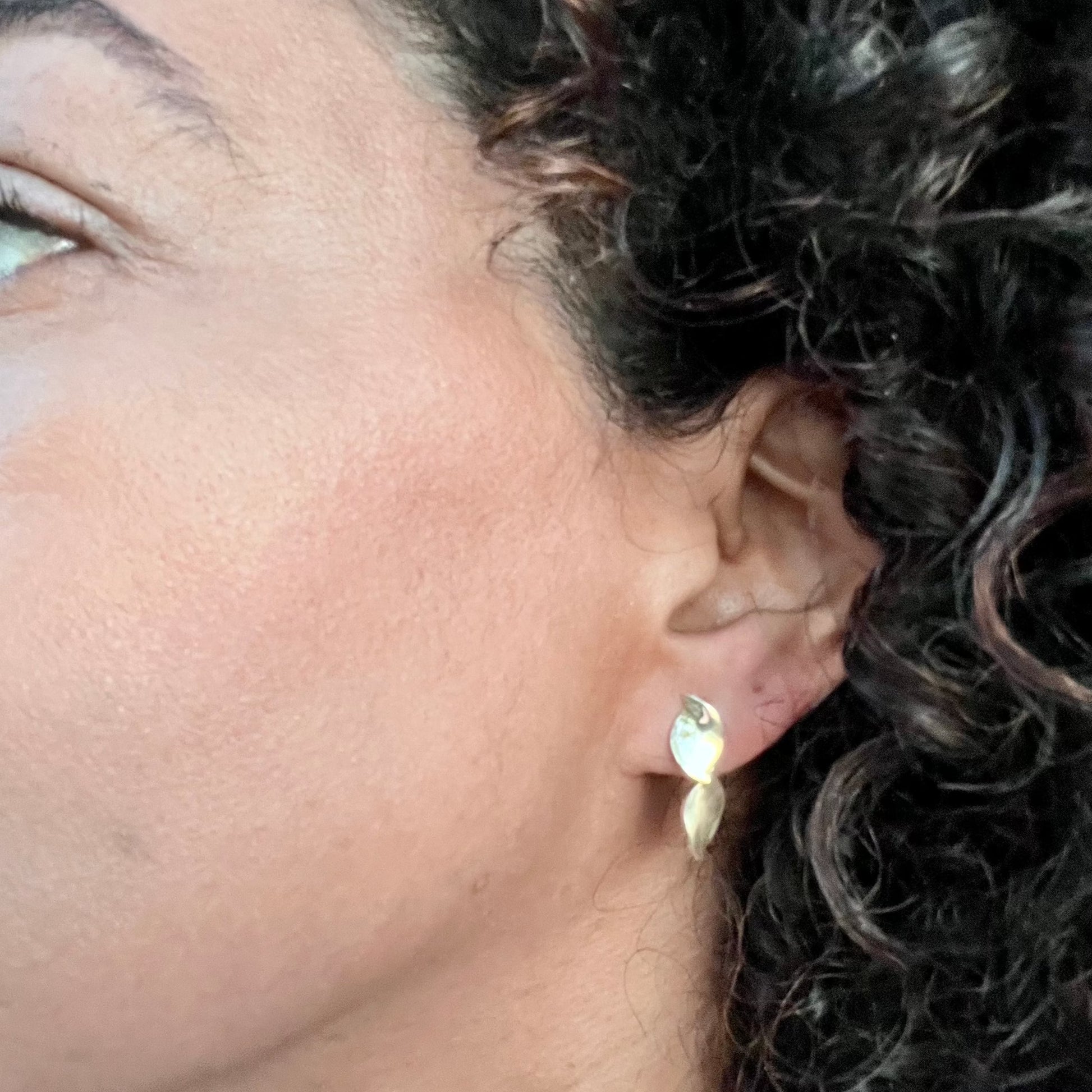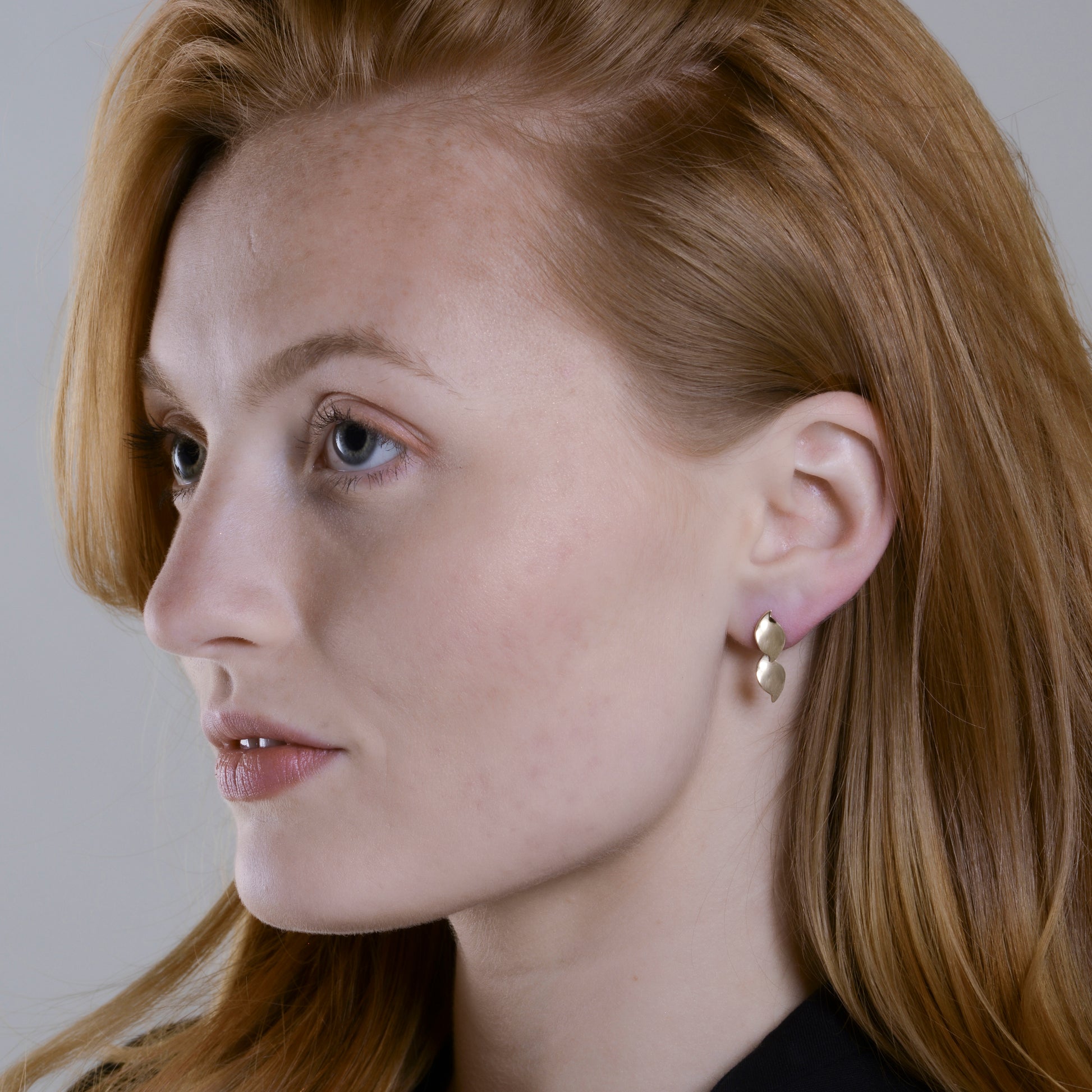 The double dangle earrings have a high-polished top slice and hand-brushed bottoms. Earrings that sway with grace and capture the dazzling light.