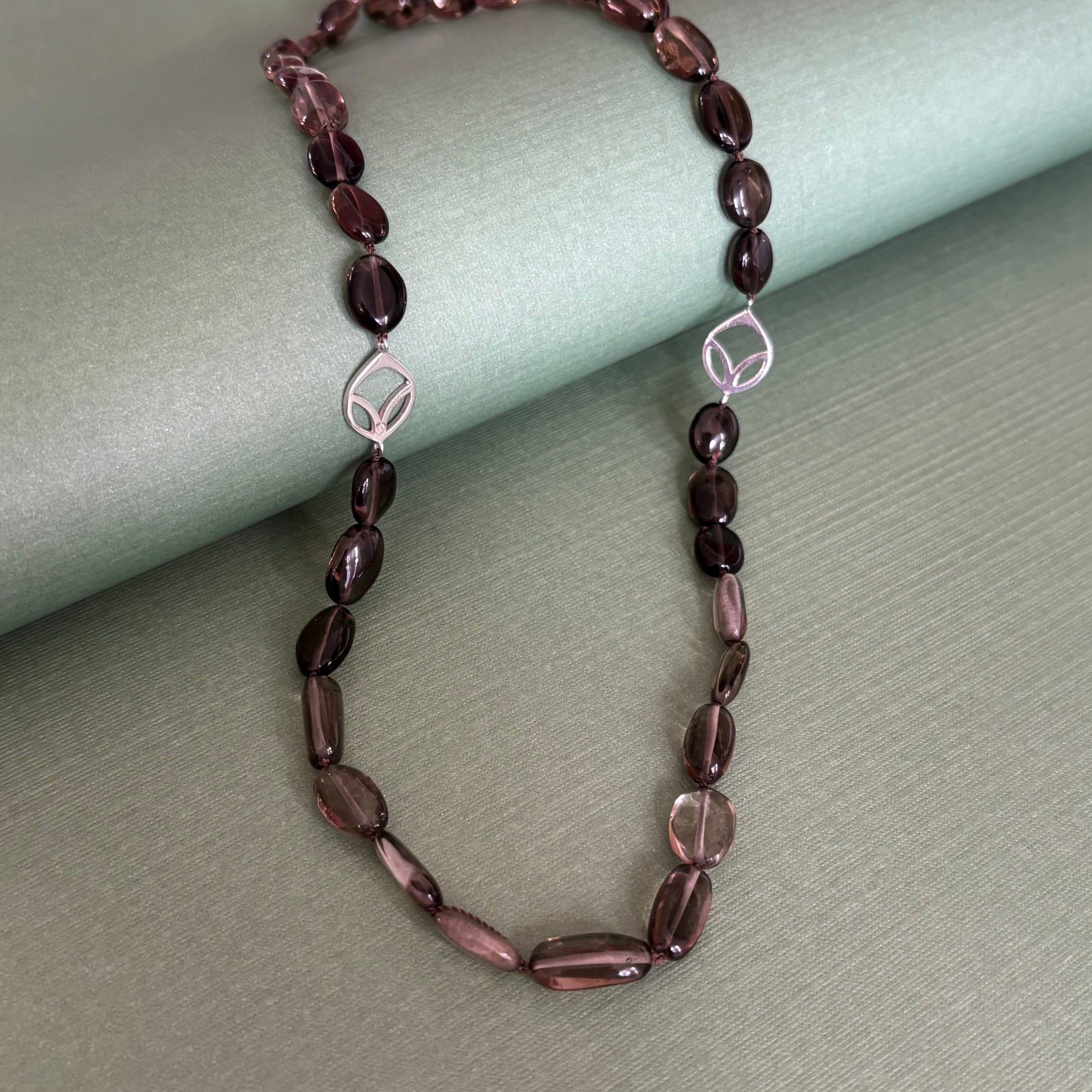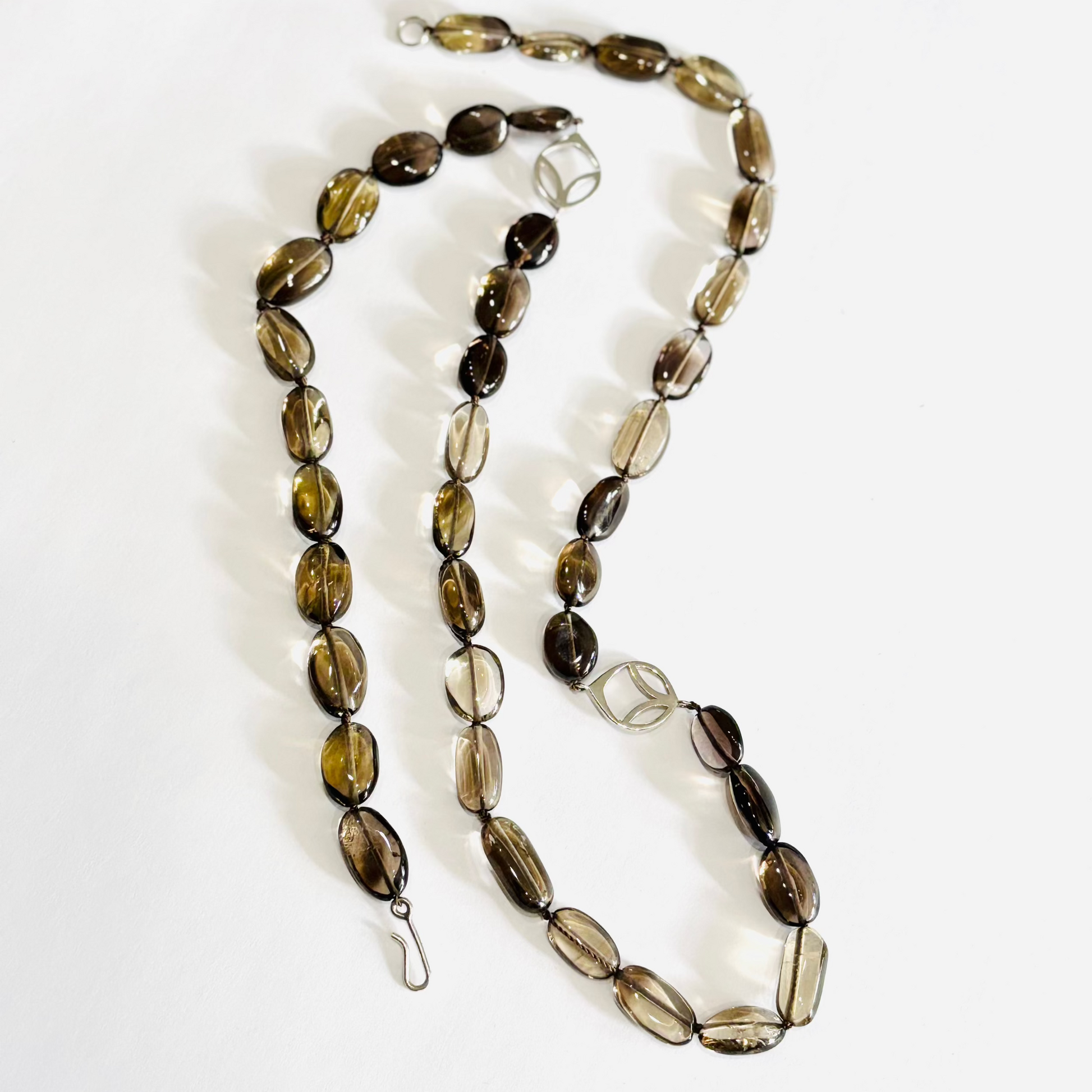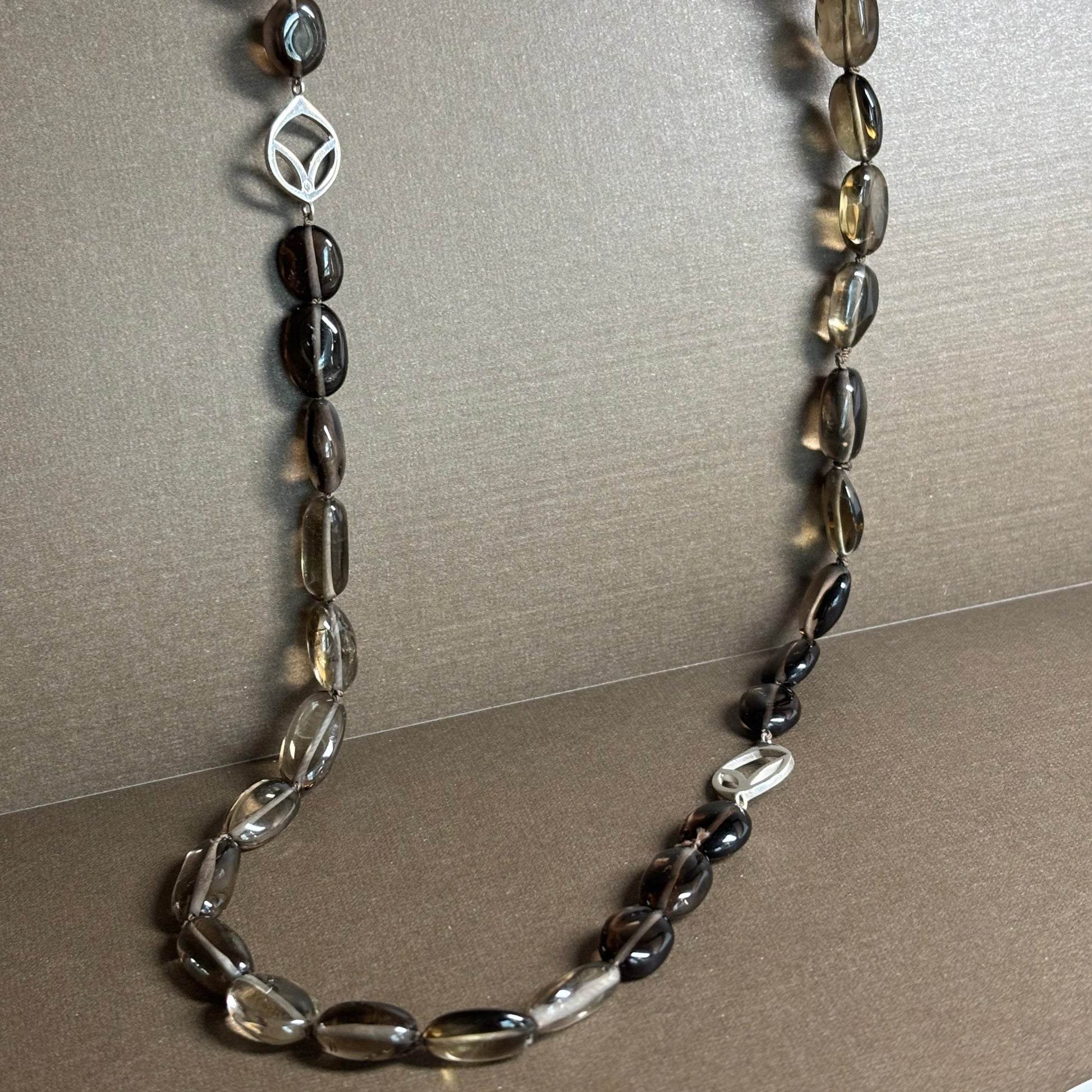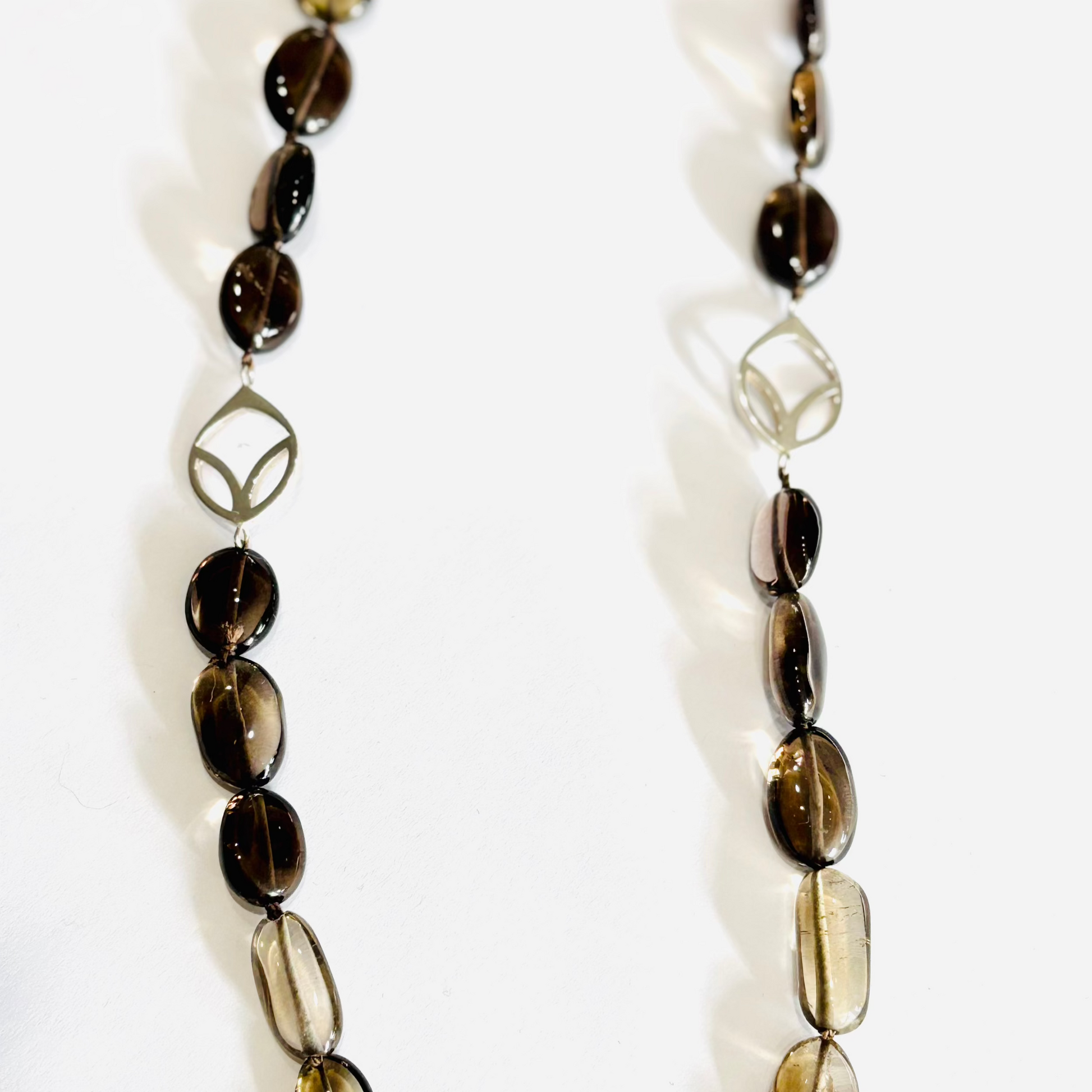 Smoky Quartz Oval Bead Necklace with Frame Links in Sterling Silver