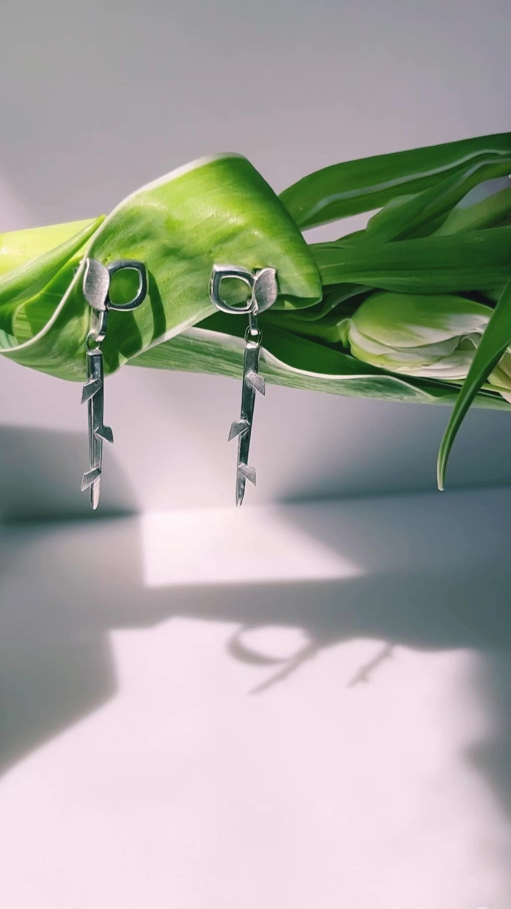 A stem and its leaves artistically rendered. Enhance your current studs with these cutting-edge Ear Jackets, elevating your jewelry box with a touch of pizzazz.