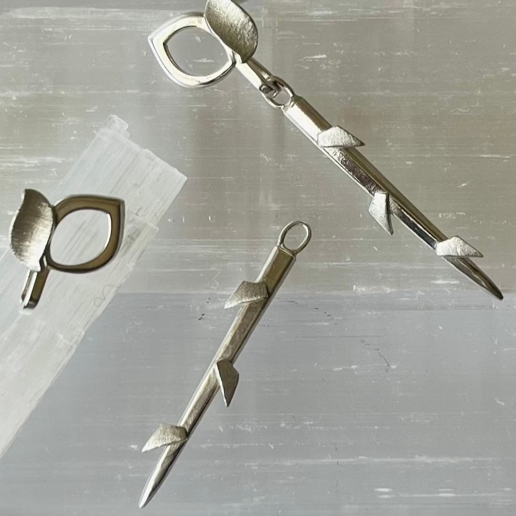 - The jackets are designed to hang from any hinged back earring. Please add note at checkout stating which collection you will be using so the adequate attachment is added.