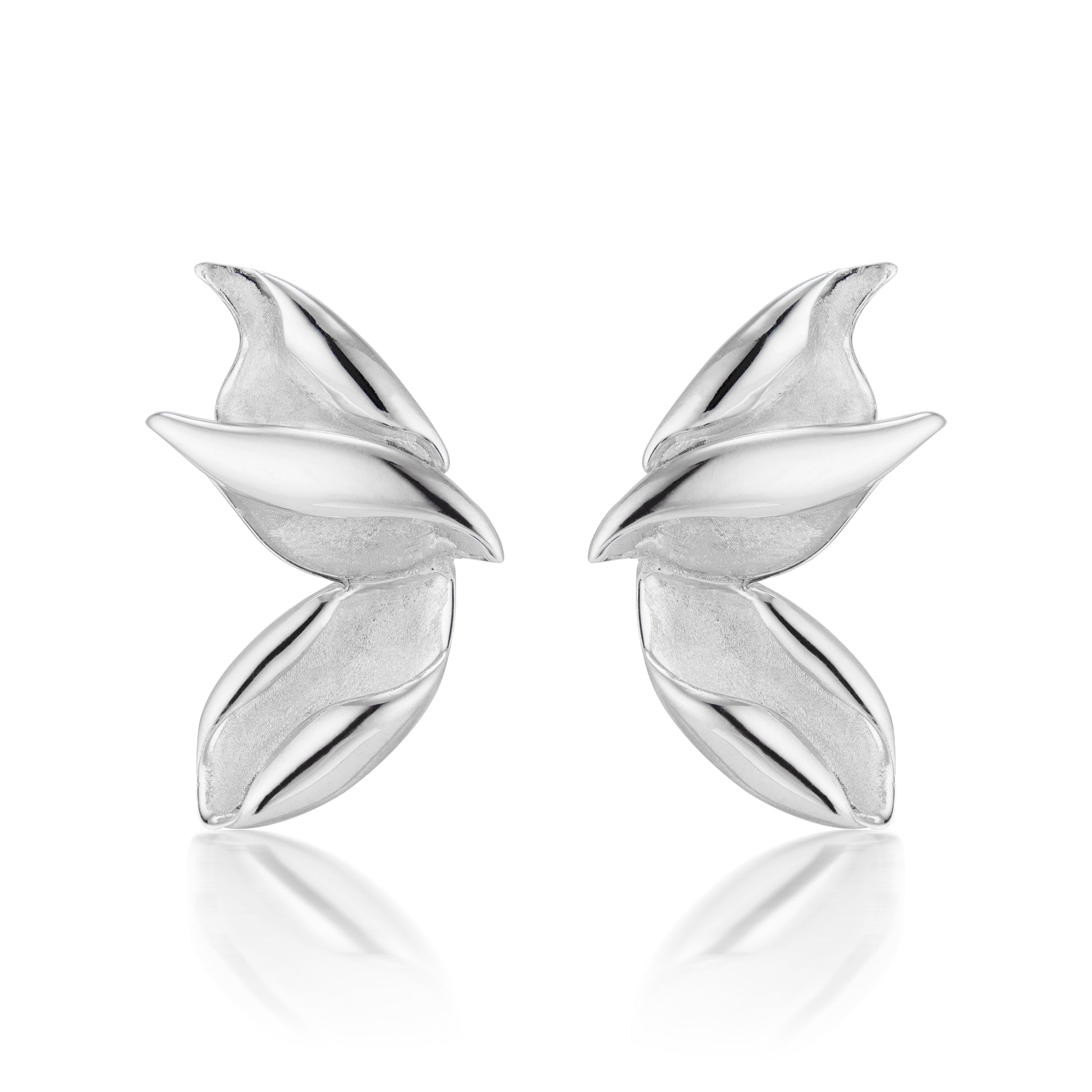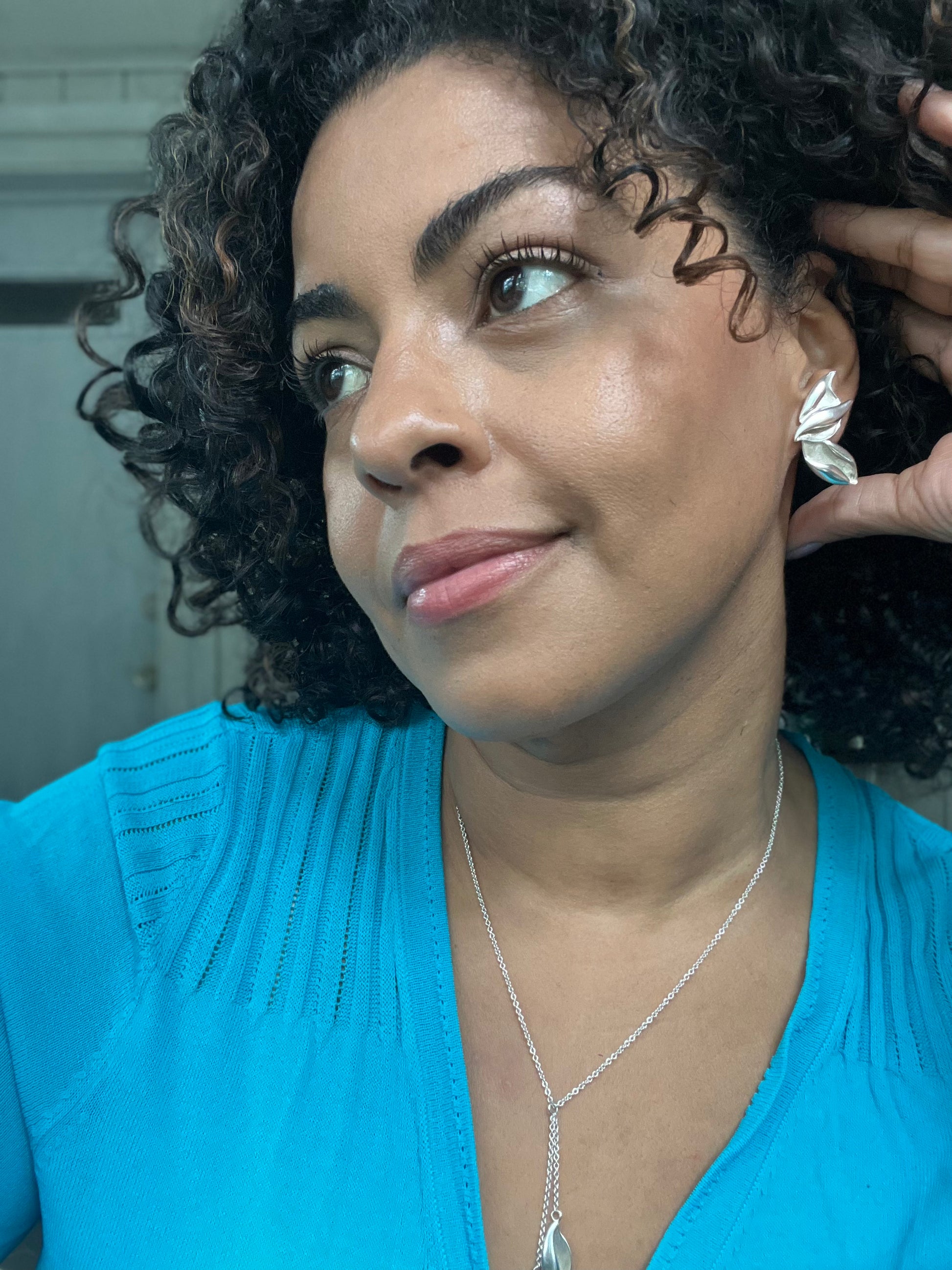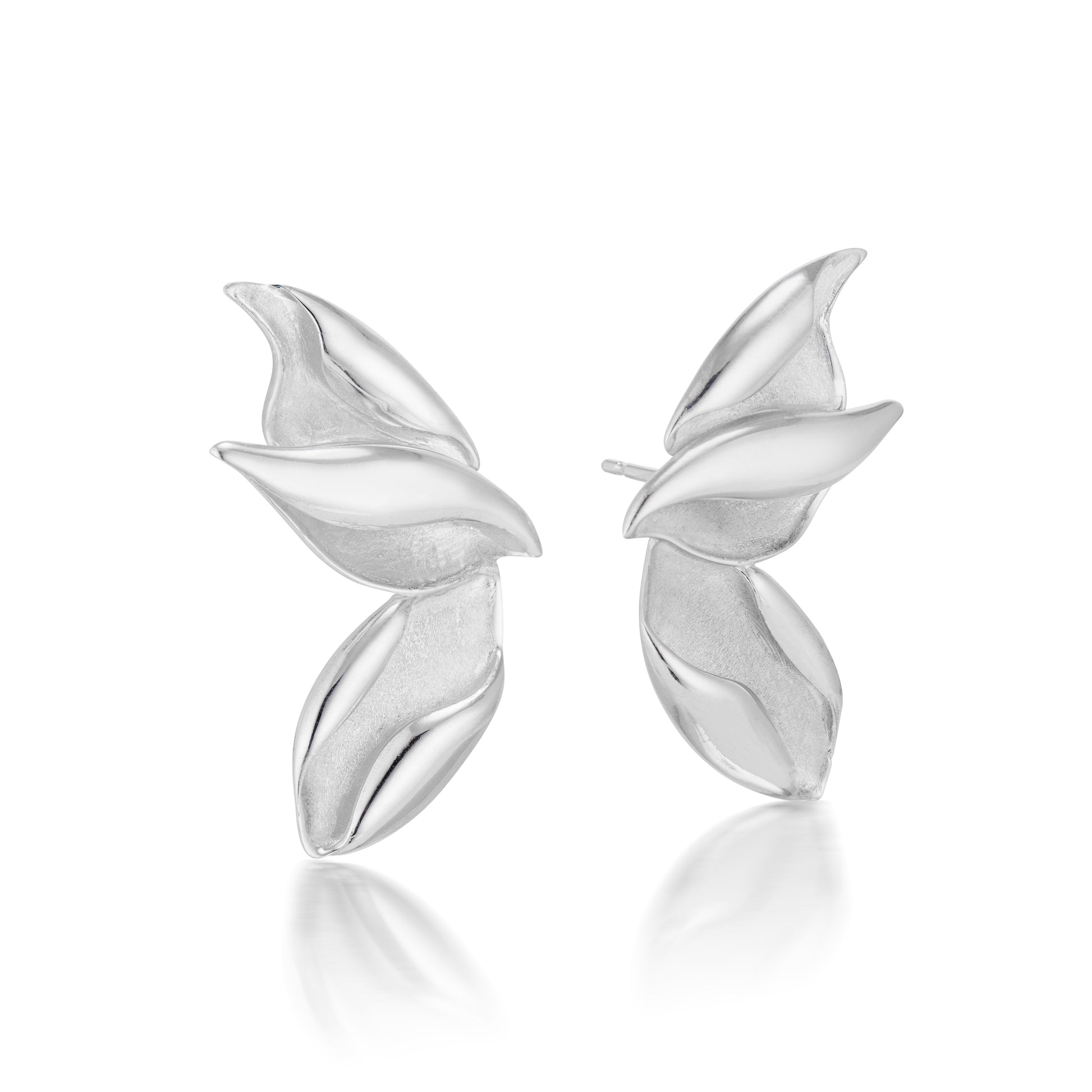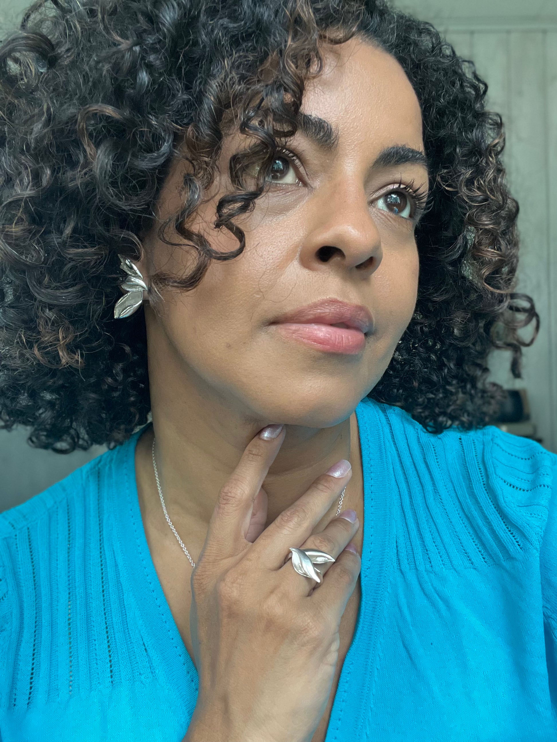 Inspired by Pods and vessels in nature. This bold 3 piece earring nestles beautifully in the ear while being Lightweight. Soft sculptural forms in a coordinated unit with a bold presence.